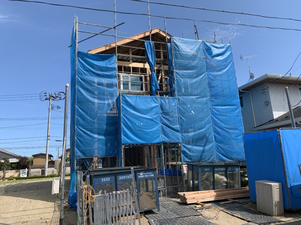 上棟を迎えまして、屋根のルーフィング工事を完了しております。