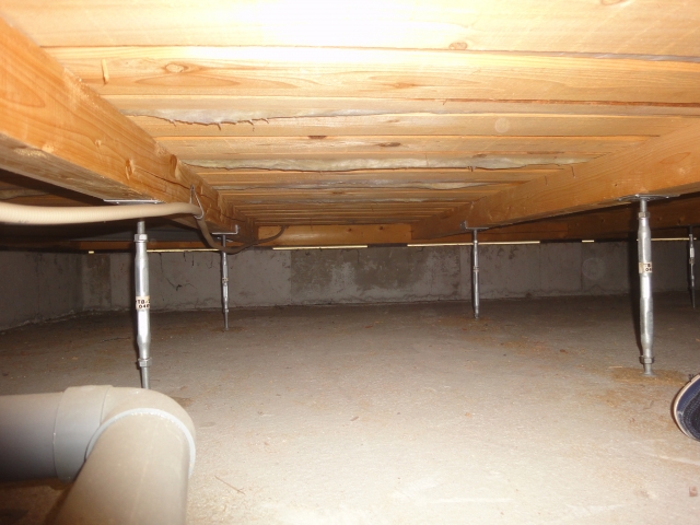 まず一般的なお家の床下は外気と同じ気温です。というのも基礎と土台の間に通気パッキンというのを置いて空気を通すようにしています。下の写真の線状に光が見えるところがそれです。