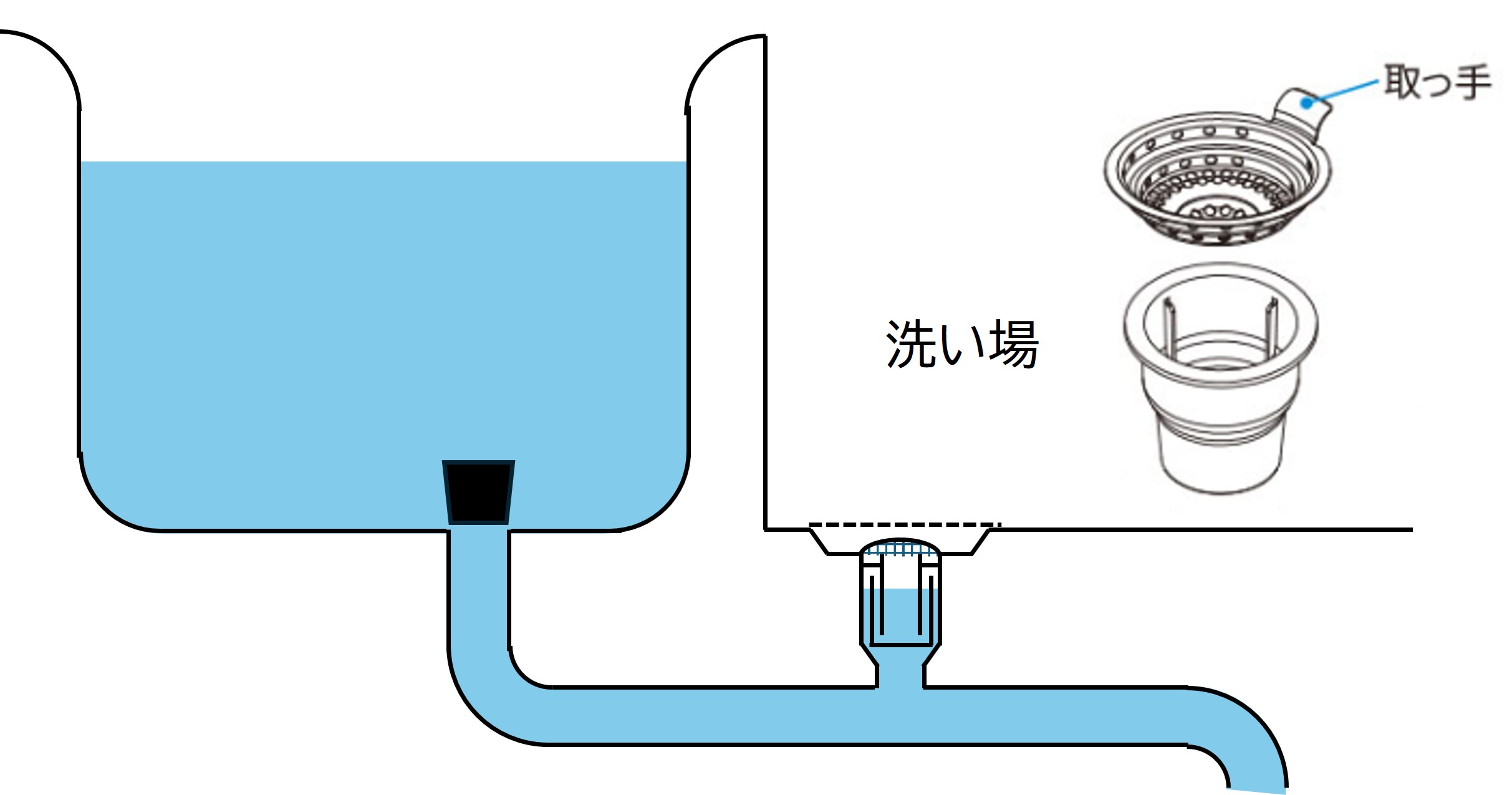 浴槽の水は、そのまま下水につながっているわけではなく、実は排水トラップという場所を経由して下水に行きます。