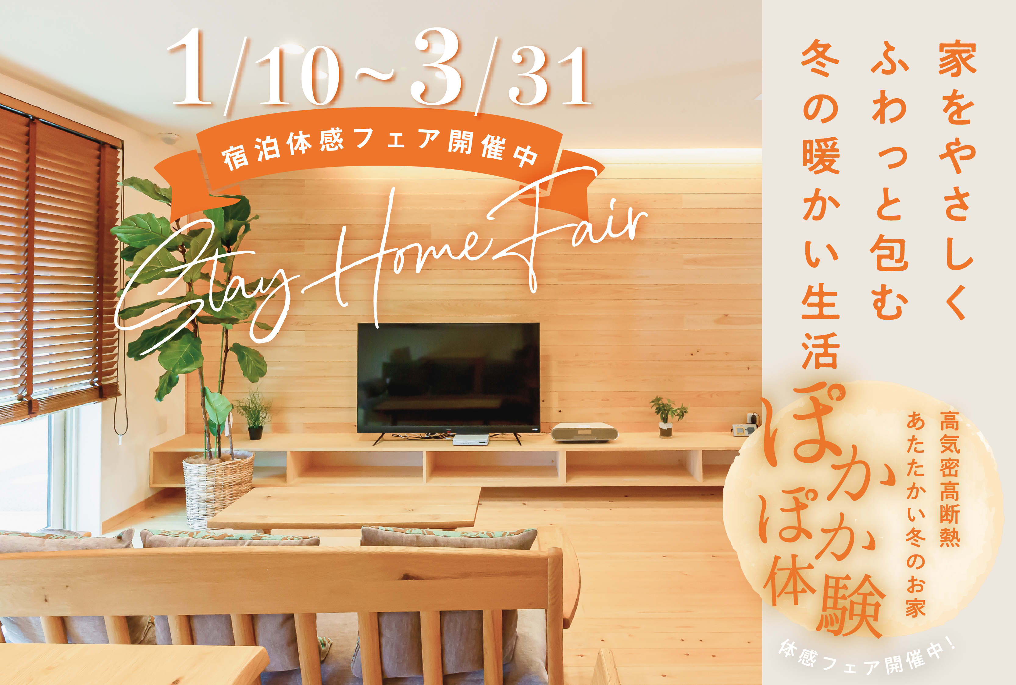 | ■ 詳細はこちら 日 時:2026/1/10 ~ 2026/3/31 時 間:チェックイン 17:00〜、チェックアウト 翌日9:00〜10:00 場 所:宿泊体感モデルハウス岩切 宮城県仙台市宮城野区岩切三所南121-1 予 約:TEL / 0120-696-911 宿泊体感モデルハウスは、言葉や数値だけでは伝えきれない快適性(温湿度・空気質・気密性・遮音性)や健全性(床下や小屋裏の環境)を、生活体験(食事・入浴・休息・就寝)を通して、住宅性能の違いや住み心地をご体感いただく施設です。ご宿泊は、当社にて新築をご検討いただける方を対象としており、他社メーカーで契約済(契約予定も含む)の方や1年以内に新築予定のない方の宿泊は、ご遠慮させていただいておりますので、何卒ご理解のほどお願い申し上げます。 ※ご宿泊は、7営業日以降のご予約をお願いいたします。担当スタッフのメール又は電話での連絡をもって、予約完了となります。 |